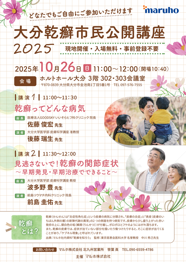 来る2025年10月26日(日)にホルトホール大分で開催されます「大分乾癬市民公開講座」にて、私も講演させていただくことになりました。